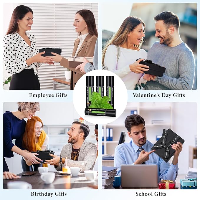 - Lip Balm Gift: there are 4 pieces of lip balm for men women, equipped with a beautifully presented gift box filled with raffia grass; Whether as a treat for yourself or as a thoughtful gift for someone else, it provides a nice idea on Thanksgiving Day, Teachers' Day, Christmas, Nurses' Day and other occasions