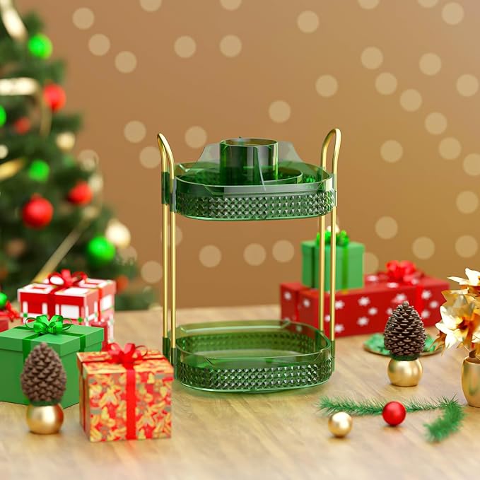 Awenia Rotating Makeup Organizer 360, Stackable Adjustable Large Capacity Cosmetic Storage Unit,Dresser Bathroom Kitchen Countertop Organizer with Metal Handle, Plus Size (Gem Green, 2 Tier)