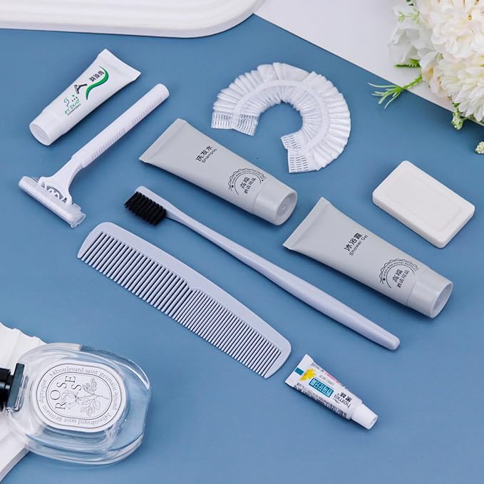 - More sets to match: our hygiene travel kit comes in a pack of 25 sets. Each travel size hygiene products bulk set consists of a Toothbrush, toothpaste, shaver, Shaving cream, comb, bath gel, shampoo, soap and bath cap. 9 items in a set. personal care travel size toiletries make it even more comprehensive, convenient and comfortable to use.