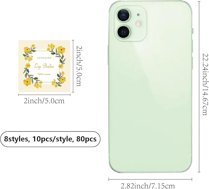 - SIZE: square custom lip balm diy label sticker about 1.96ร1.96inch (5x5cm), 8 styles, 10pcs/style, 80pcs/set.