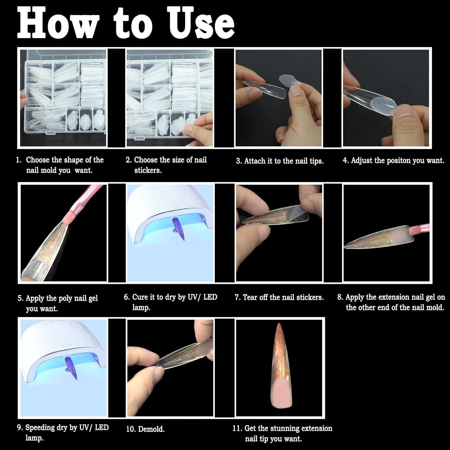 - Clearly Marked: Poly gel nail forms are designed with the appropriate length and clear scales on the nail formsโ surface. Each false tip is engraved with number above its end from 0-11 individually, so you can quickly find and choose the right sizes dual forms for nail art.