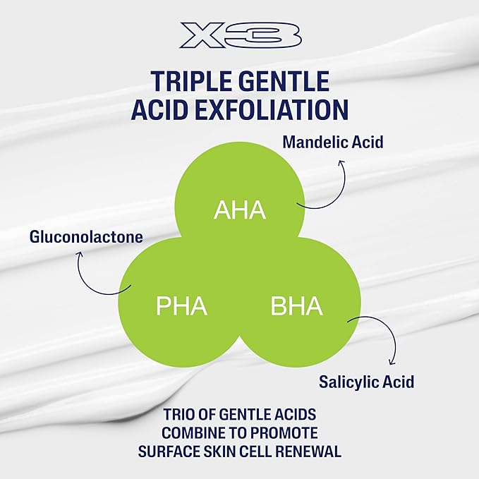 - IMPROVE TEXTURE AND TONE: Formulated with a unique triple acid blend of Salicylic Acid, Mandelic Acid and Gluconolactone, designed to remove excess oil, improve skin tone and retain skin's moisture while exfoliating