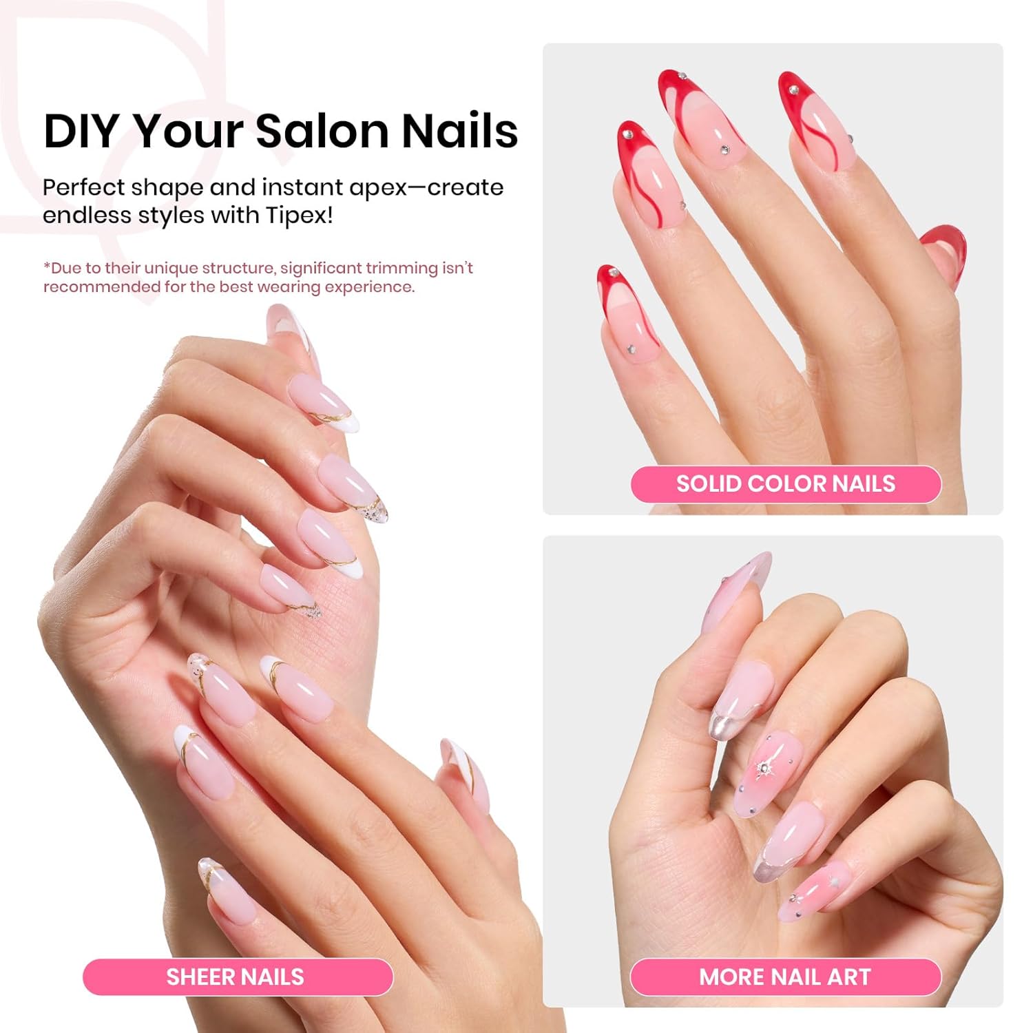 - WARM TIPS: Beetles Tipex tips are designed with a thicker, structured shape to deliver a strong apex and salon-level hold. Theyโre best suited for NAIL PROFESSIONALS or EXPERIENCED USERS who are familiar with Tipex pre-etched, pre-building tips. For optimal results, we highly recommend using solid nail glue to ensure a secure and even application. Not ideal for beginners or those preferring thin, flexible tips.