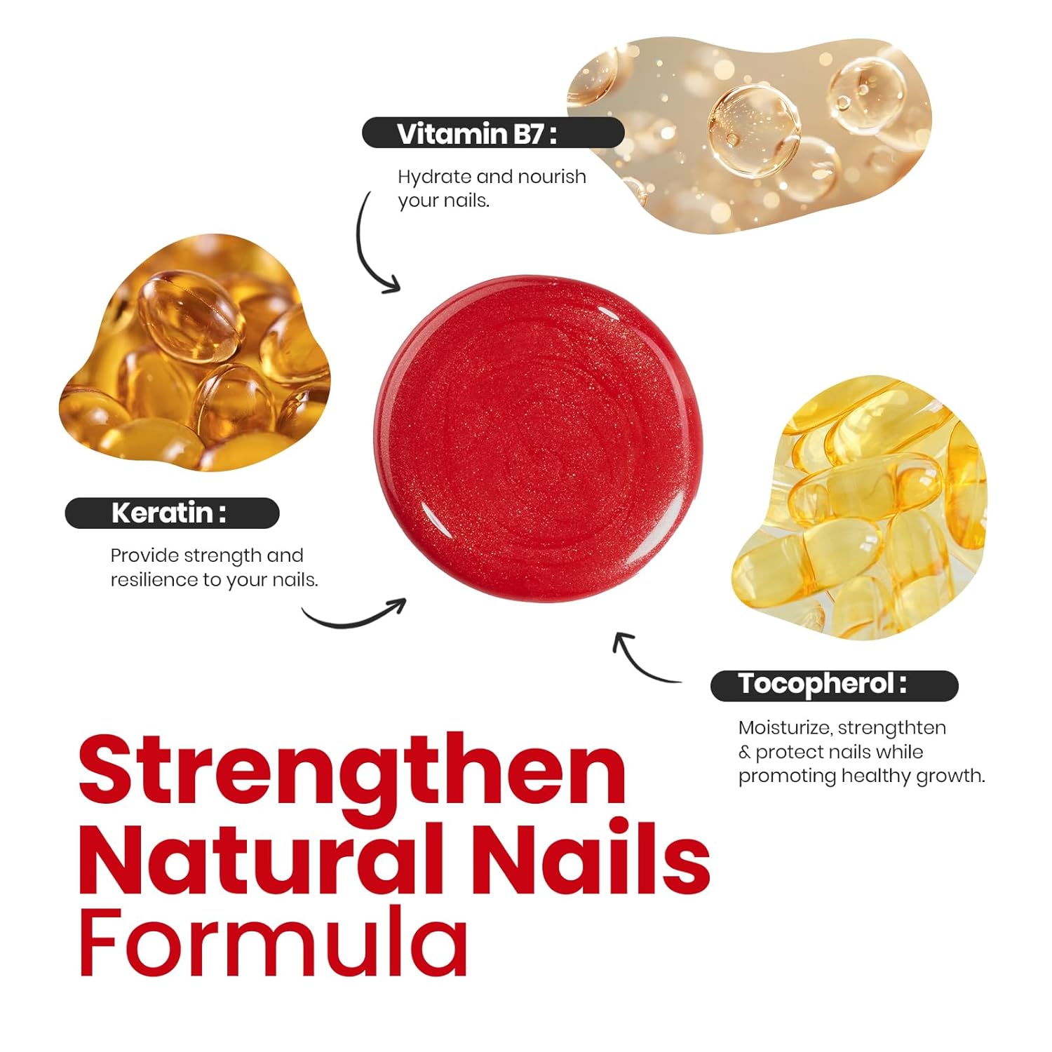 - Nourishing Ingredients: Beetles Nail Polish enriched with keratin, vitamin B7, and tocopherol, this red nail polish not only adds a vibrant touch but also strengthens your nails. Enjoy enhanced thickness and hardness, promoting faster nail recovery with every application