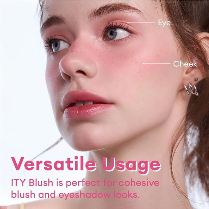 - Dual-Purpose Use: ITY Mood Blush serves as both blush and eyeshadow, ensuring cohesive makeup routines. Seamlessly transition from enhancing cheeks to defining eyes for a polished, unified look.