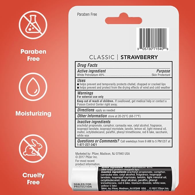 - HYDRATING LIP TREATMENT: For soft and protected lips, this bundle features 4 tubes of Strawberry Chapstick, a sheer pink-tinted lip balm, plus 1 tube of the Classic Original ChapStick.