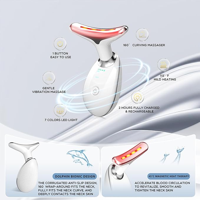 - 【7-in-1 SKIN CARE】This 7-in-1 face massager has 7 different LED light modes , which unveil a truly beautiful glow, maintain a healthy and radiant complexion, reduce double chins
