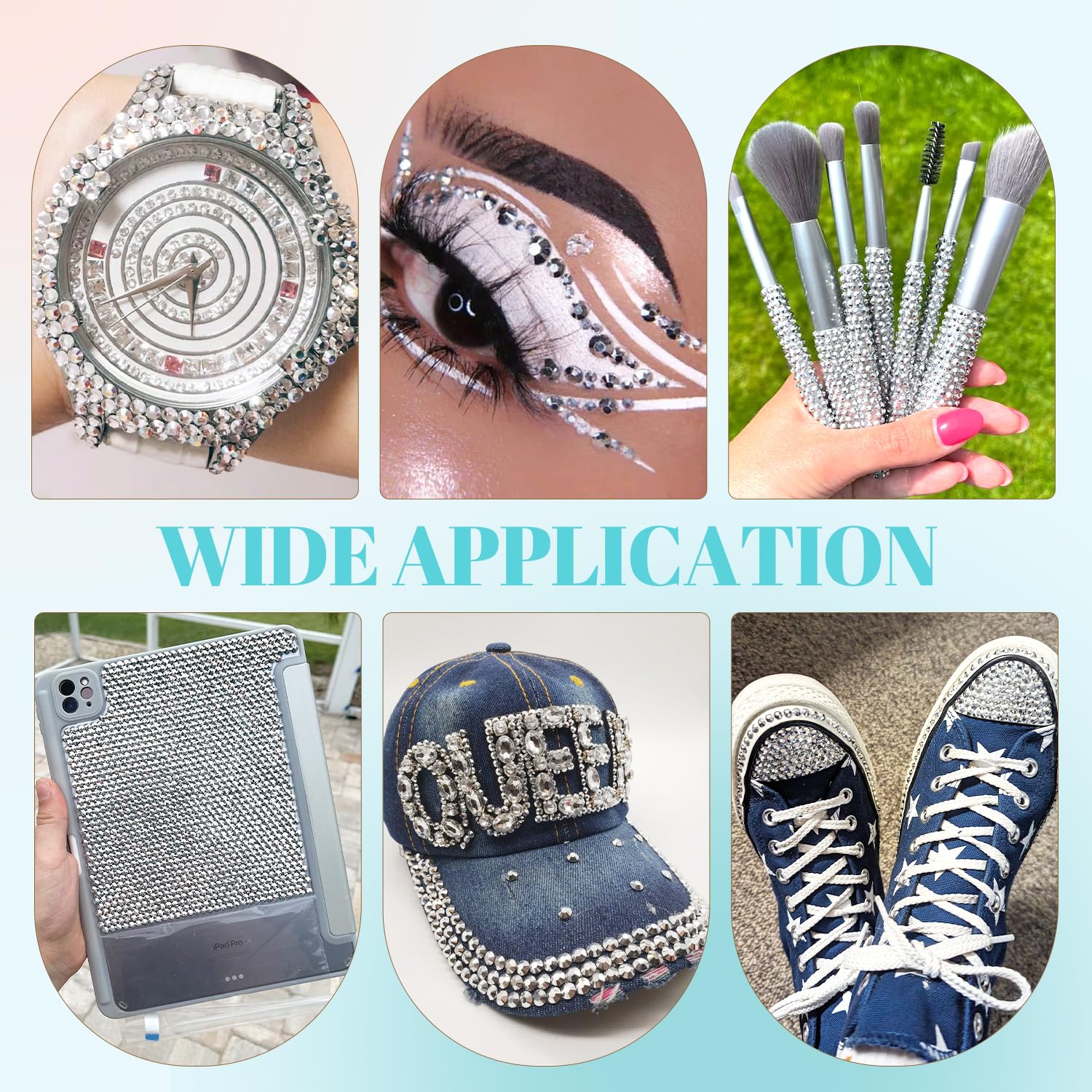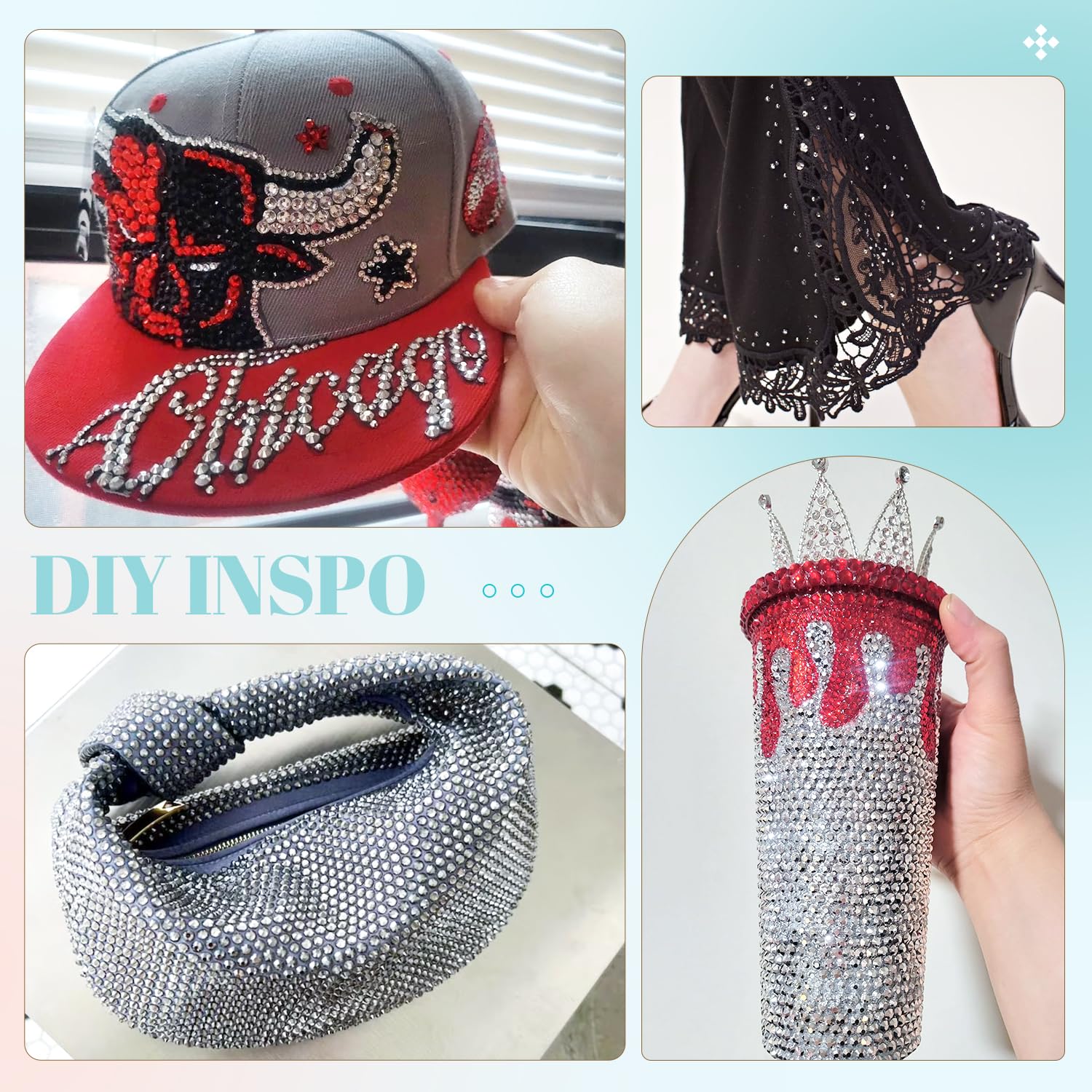 - 💎WIDE APPLICATION -- These sparkling iridescent resin crystals are perfect for creating dazzling looks. Use them for bedazzling DIY crafts like shoes, tumblers, mugs, bottles, phone cases, popsockets, scrapbooks, photo frames, diamond paintings, greeting cards, bags, glasses, guitars, keychains, hats, masks, hair clips, bracelets, wristbands, clothing, wedding dresses, and more. Apply it to what you want to bling!