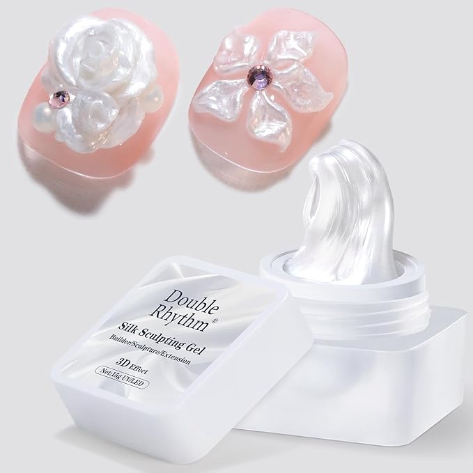 Double Rhythm 3D Nail Gel Pearl Solid Sculpting Gel for Nail Art Non-Sticky Hard Gel for Building Carving Molding Nail Extension Soak Off UV/LED Nail Art Salon Home DIY 0.5 Oz (Silver-Silk 01)
