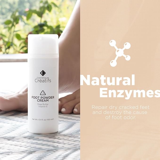 Foot Powder Cream for Dry Cracked Heels, Odor Control, and Intense Skin Hydration, 3.4 fl. oz., with Shea Butter and Vitamin E