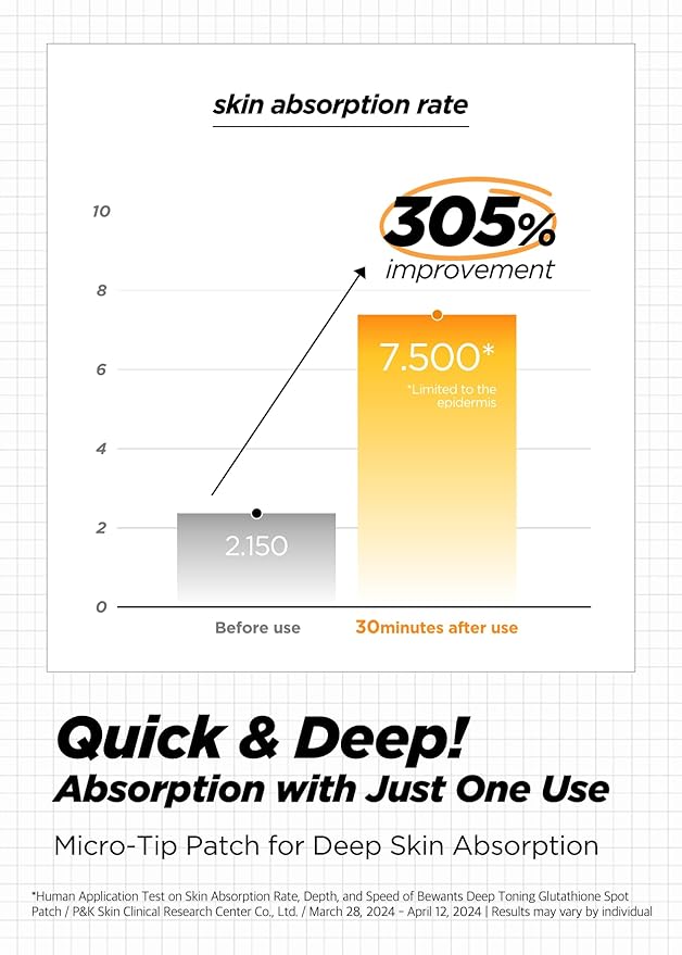 - Effective Skin Enhancement: Bewants Deep Toning Glutathione Dark Spot Patch utilizes advanced micro tip technology to penetrate deeply, enhancing skin elasticity, texture, and tone while reducing blemishes and pigmentation.