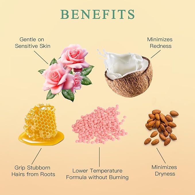 - 【Waxing Beads for Sensitive Skin】BOUVETAN hard wax beans are specifically formulated with hypoallergenic ingredients. They are meticulously designed for sensitive areas hair removal like the bikini line and underarms