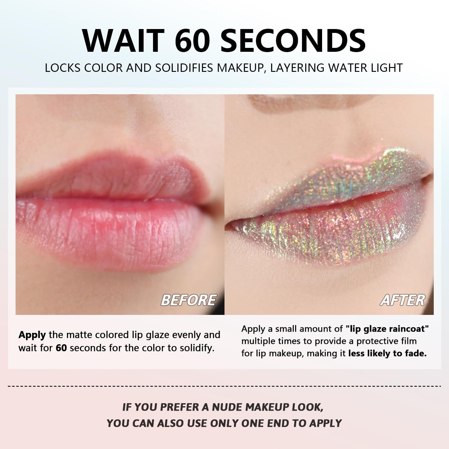 CHARMACY 2 In 1 Multichrome Moisturizing Lip Gloss, Double Head Liquid Lipstick, Mirror Waterproof Long Lasting No Fading Lip Balm, Hydrating Lip Plumper Waterlight Glossy Makeup #005
