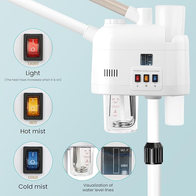 face steamer for hot and cold, Face Steamer with More Steam, Adjustable Height for Face Steamer Suitable for Personal Home and Professional Personal Care Places, Moisturizing or Hydrating.