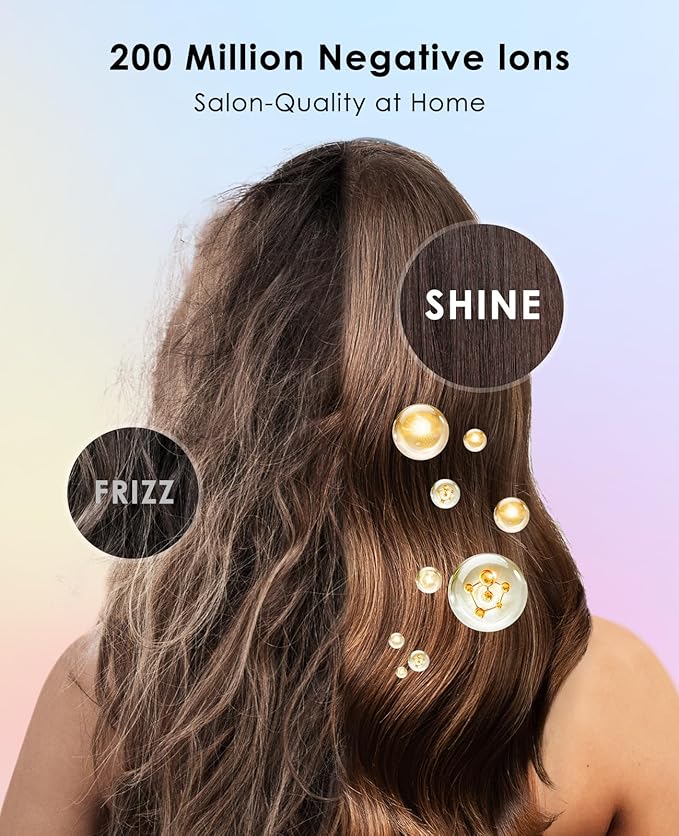 - Automatic Temperature Control: the fast drying hairdryer is equipped with advanced temperature control technology, ensuring that your hair is protected from excessive heat. It automatically adjusts the temperature 200 times/S to prevent damage and promote healthier hair. Say goodbye to frizz and hello to smooth, shiny locks.
