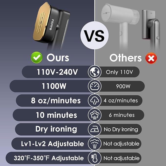 - 【110V-240V Dual Voltage Steamer for Global Travel】 Experience hassle-free ironing worldwide with our clothes steamer featuring advanced 110V-240V dual voltage technology. No adapters neede, Plug and Play, Easy to use. This travel steamer for clothes is your wrinkle-free companion for international trips, business travels, or daily use. Whether you're in Europe, the U.S., or Asia, this travel steamer is Compact enough for carry-ons.