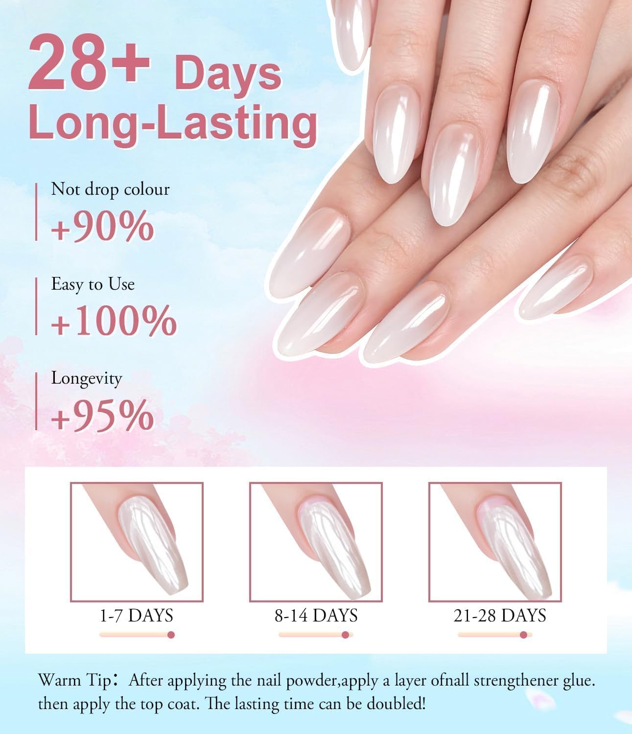 - Distinctive Pearl Chrome Powder: Our powder is a newly upgraded super transparent pearl chrome nail powder. The brightness and shiny is better than the old version, this powder is non-toxic, harmless, especially durable, vegan and harmless. Elevate your nail art with our superior quality chrome powder set that effortlessly creates mesmerizing mermaid chrome effects.