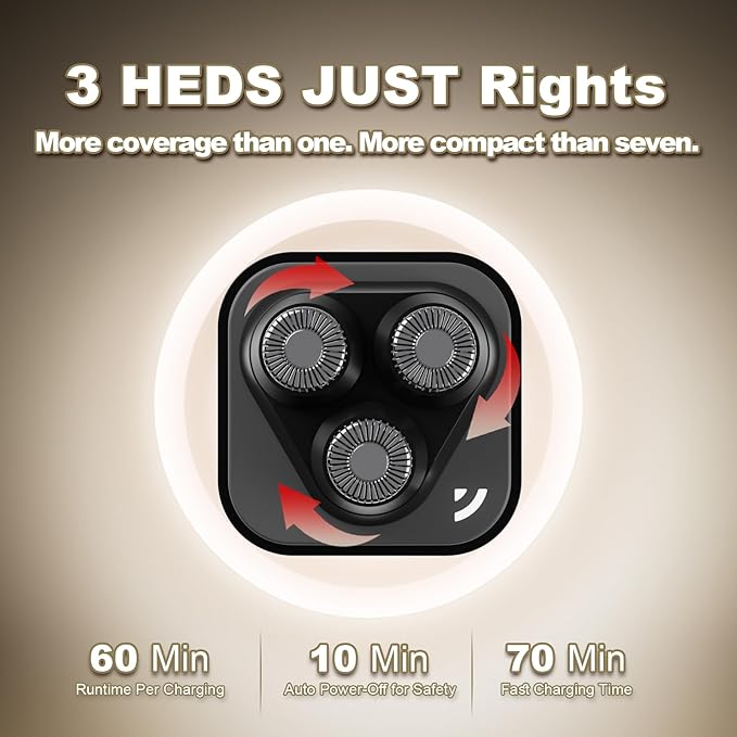 - 【Gentle & Efficient 3-Blade Design】3 floating blades ensure a smooth, gentle shave on face, neck, arms, and legs. A great facial hair remover for women, more efficient than single-head and more portable than 7-head.
