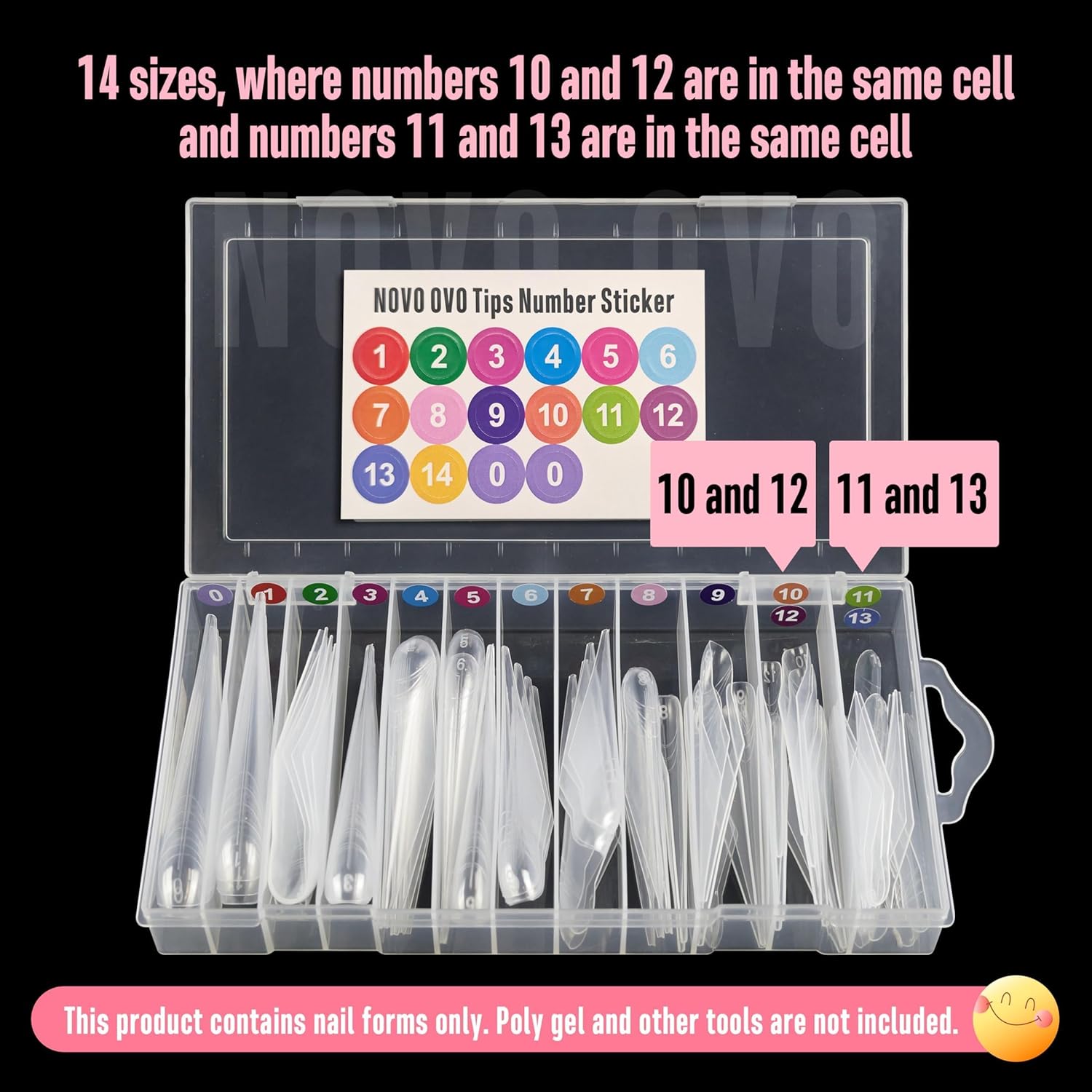 - THE WORLD'S FIRST XXXXL OR 5XL STILETTO BUTTERFLY DUAL FORM: At the demand of our clients—trendy nail artists and DIY enthusiasts、—NOVO OVO is excited to unveil this innovative Super Long Stiletto Nail tips with wings dual form. Effortlessly create stunning nails that are ideal for holiday parties and spooky festivities by filling the forms with poly gel, harder gel or builder gel positioning them on your nail, curing, and simply popping them off for a flawless 3D astonishing finish.
