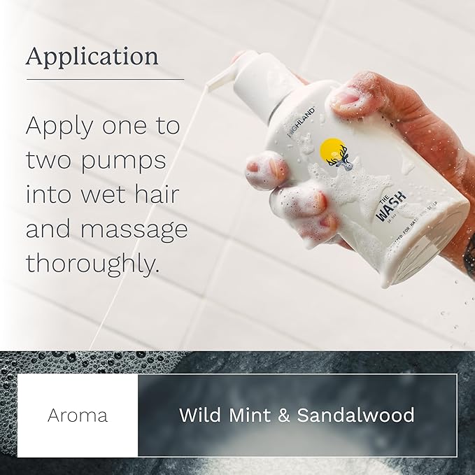 Highland: The Wash. Your new hair and scalp optimized shampoo alternative. Hydrating, balancing, nourishing & strengthening. Crafted with botanical ingredients.