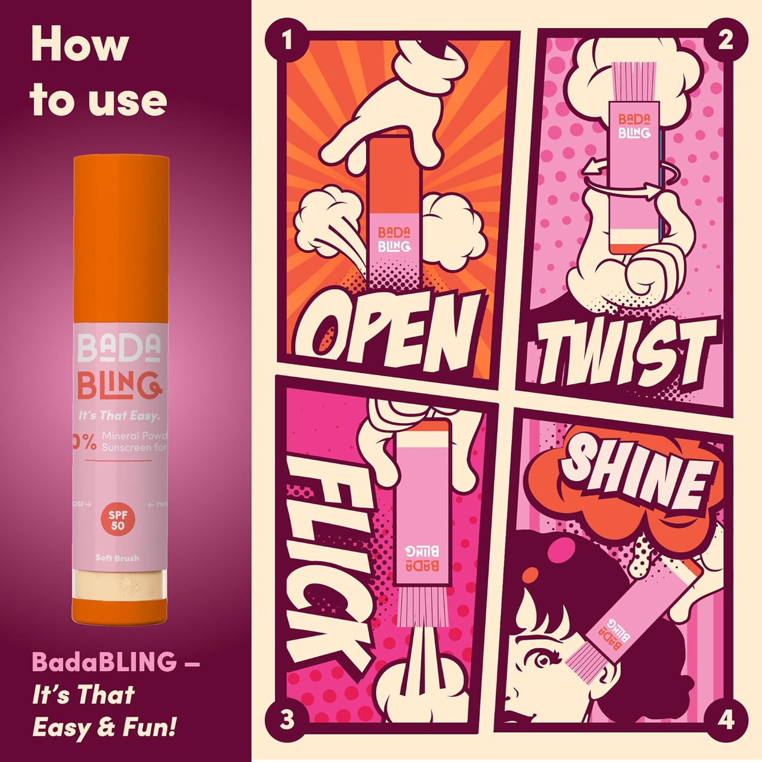 Bada Boom Bada Bling Shimmer Mineral Translucent Sunscreen Powder, Brush on SPF 50 and Sparkles