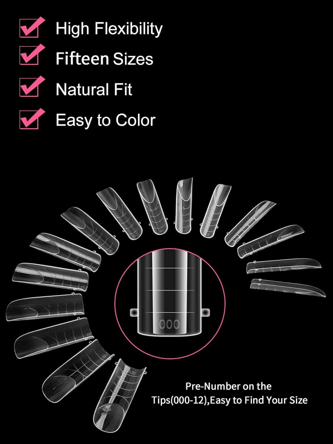 - 【Nail Form Mold with 15 Sizes】150pcs stiletto clear dual forms for poly nail gel offers 15 different nail sizes , and each size of long nail tips is separated by a small grid, a total of 15 grids, so they're easy and convenient to choose the suitable size to meet your nail's need.