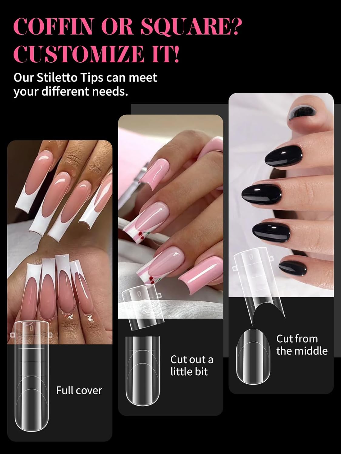 - 【Sturdy No C Curve Gel Nail Forms】Reusable extra long nail molds are made with high quality material, which is strong, tough, and reusable, providing you with a different lengths nail art experience that lasts.This artificial nails forms protective sleeve has a small handle on both sides, which is convenient for constructing gel nail extension nails, and will not stick to your hands, and can be easily removed after application.