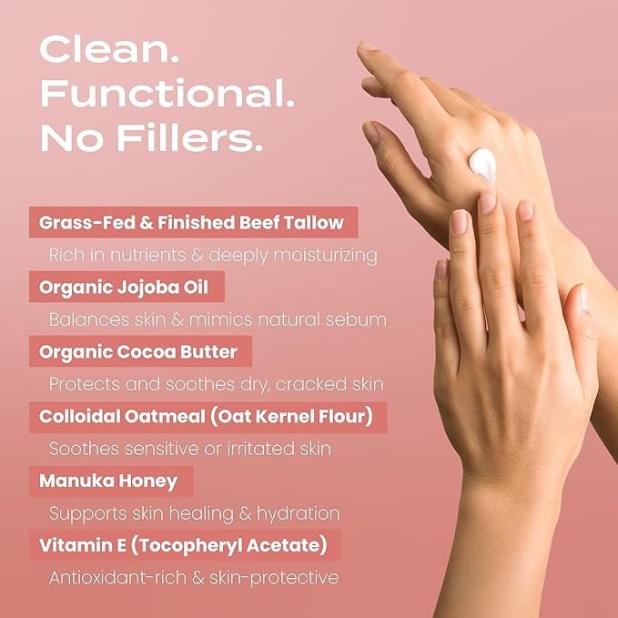 - Quality You Can Feel: Our balm is crafted in the USA using 100% grass fed cow tallow, Manuka honey, and other natural, skin-loving ingredients. Free from parabens, and toxinsโjust pure, effective skincare you can trust.