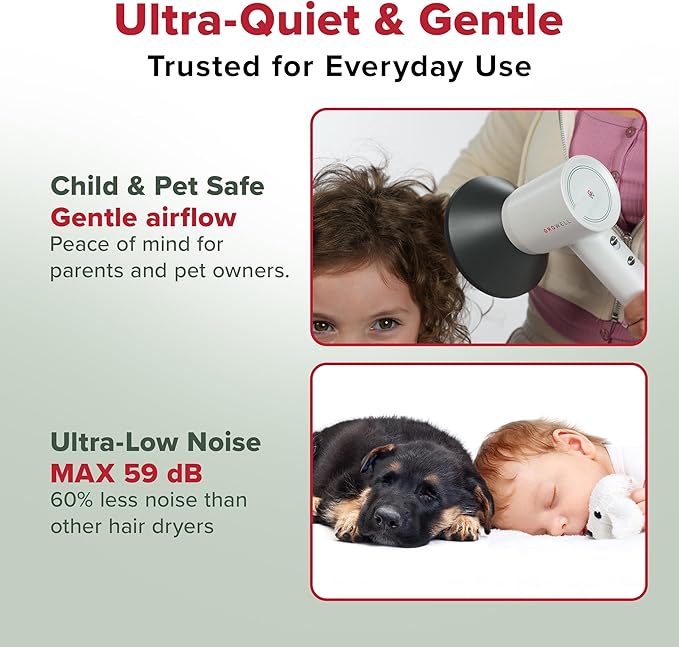 - FAST DRYING POWER: High-speed brushless motor dries hair in minutes with powerful airflow. Dries hair in minutes, up to five times faster than traditional hair dryers. Get professional hair dryer results at home.