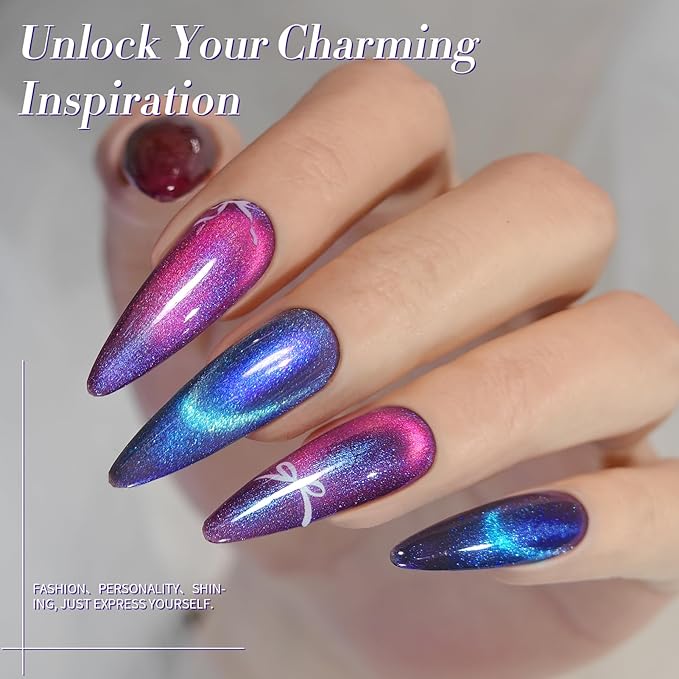 - PACKAGE CONTENTS:6 Bottles jelly crystal cat magnetic gel nail polish gift set .Transparent jelly glass bead texture, super amount of magnetic powder good suction is not easy to run, moist texture, delicate cat's magnetic eye luster, very suitable for spring and summer.