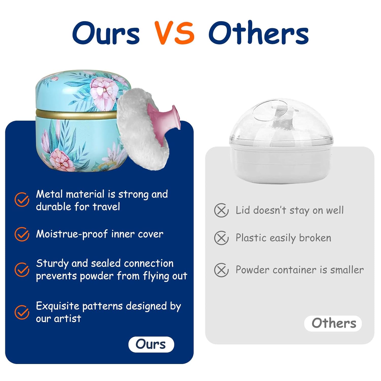 - GORGEOUS POWDER BOX: our powder case is made of tinplate, not easy to break and fade after being dropped, also can be used for a long time. the surface of the powder container has exquisite patterns designed by our artist, bring visual enjoyment.