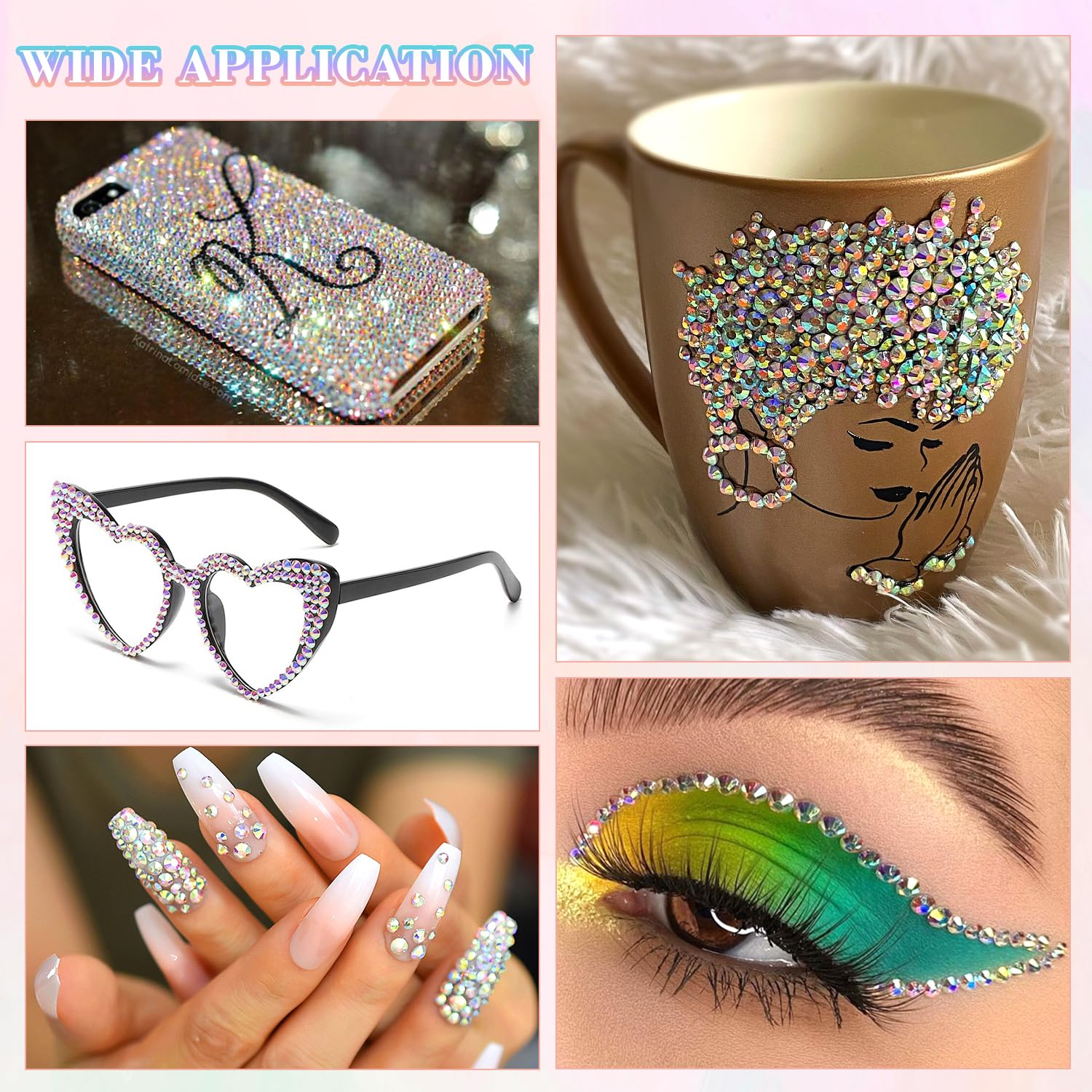 - PACKAGE CONTENT โ This all-in-one bedazzler kit includes everything you need to start creating dazzling designs: 1 box of AB rhinestones with 24 grids (approx. 30,000 pcs of bedazzling rhinestones assorted size SS6/10/16/20/30 ), 1 precision tweezers, 1 pickup pen for handling small gems, and 3 tubes of B7000 jewelry glue for secure application.