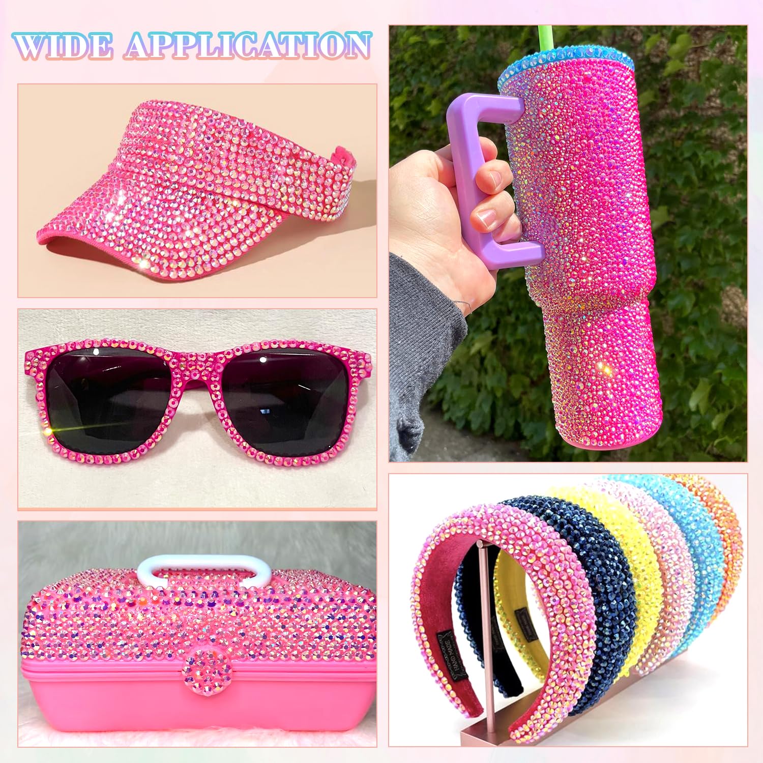 - PACKAGE CONTENT โ This all-in-one bedazzler kit includes everything you need to start creating dazzling designs: 1 box of Hot Pink AB rhinestones with 24 grids (approx. 30,000 pcs of bedazzling rhinestones assorted size SS6/10/16/20/30 ), 1 precision tweezers, 1 pickup pen for handling small gems, and 3 tubes of B7000 jewelry glue for secure application.