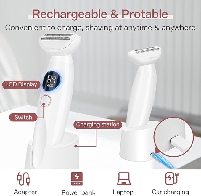 - Long-Lasting Battery: cordless electric shaver for women is a good companion for a trip, offering you quick grooming on the go. Equipped with a USB cable for convenient charging outdoors or on vacation, the bikini trimmer runs up to 90 minutes on 1.5 hours charge. Letโs enjoy extra portability with our lightweight trimmer.