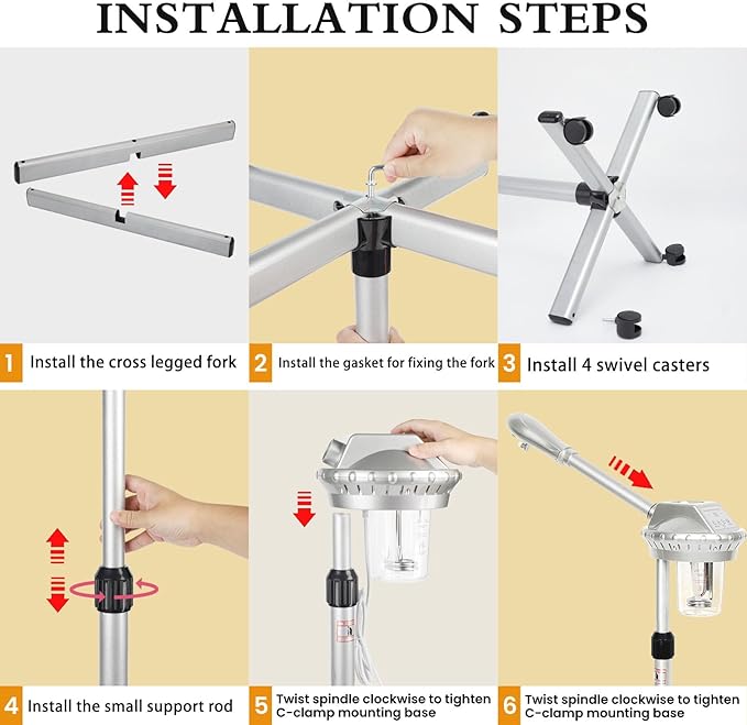 - The nozzle of stand facial steamer can rotate 360ยฐ and be freely adjusted between 36-52 inches in height, making it suitable for people of different heights and different scenarios. Whether you are sitting or standing, you can find the most suitable angle to enjoy a professional facial spa treatment at home