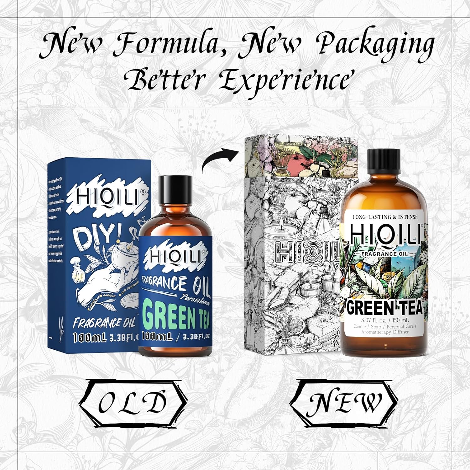 HIQILI Green Tea Fragrance Oil for Candle & Soap Making, Refreshing Scents, for Home Diffusers, Laundry Dryer Balls - 5.07 Fl Oz