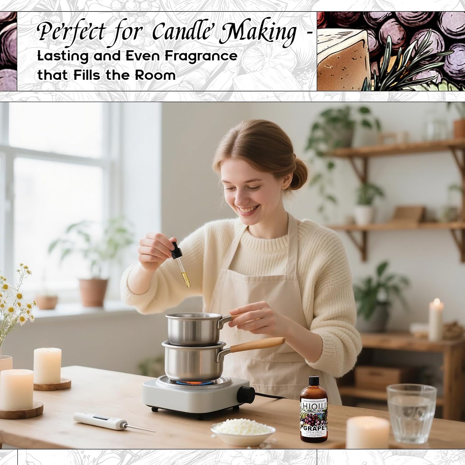 HIQILI Grape Fragrance Oil for Diffuser & Oil Burner, Fruity Scents for Making Candles, Hand Soap, Air Freshener, Long Lasting - 5.07 Fl Oz
