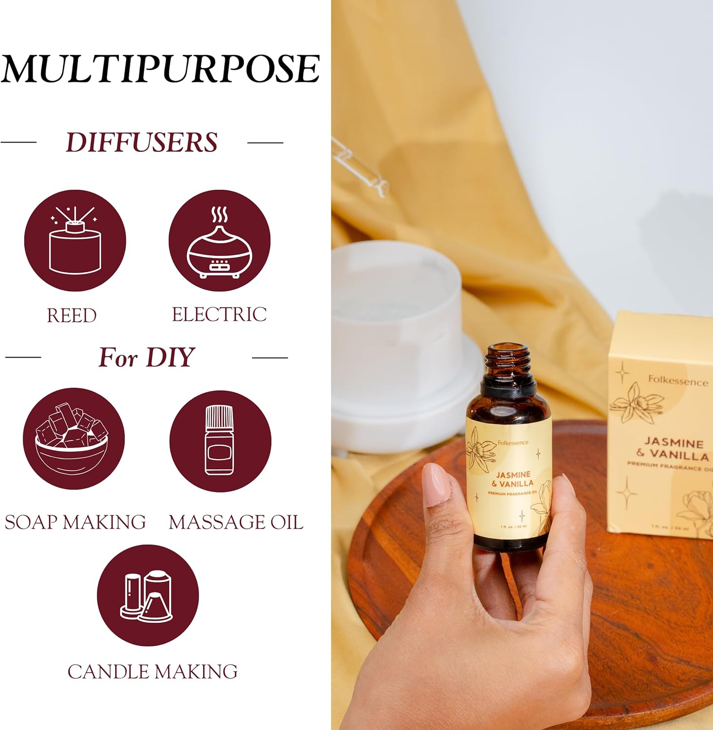 - Scent : Jasmine & Vanilla