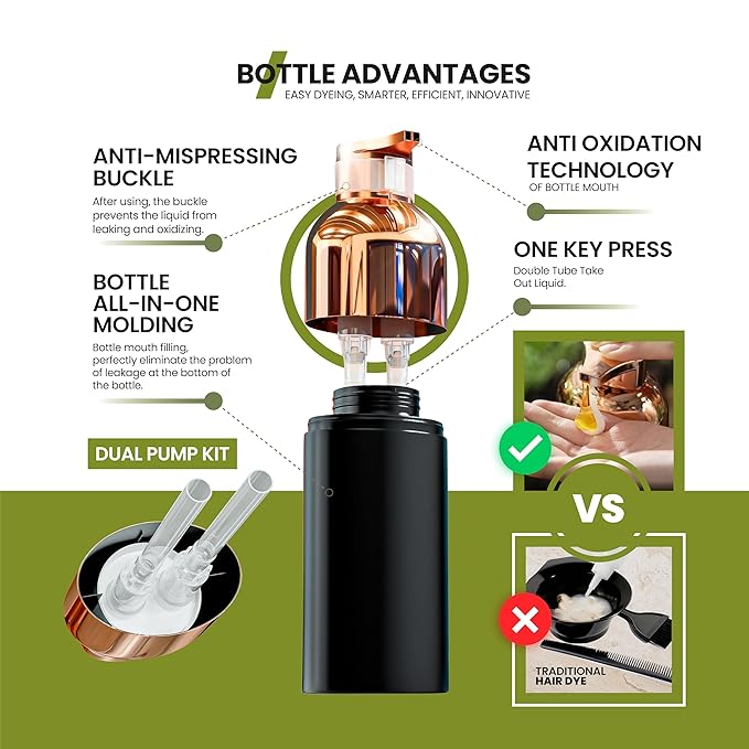 - 【GRAY HAIR COVERAGE & COLOR TRANSFORMATION】 Effectively covers gray hair and achieves hair color transformation with natural looking, shiny, healthier, evenly colored, and Non-Stick to the scalp hair dye. It is Instant, vibrant color, and long lasting. General Note: Transforming to a darker color is reliably achievable while transforming from a darker (Dyed) hair to a lighter shade is typically challenging. For natural hair color (non Dyed), you can achieve 1 to 2 shades lighter.