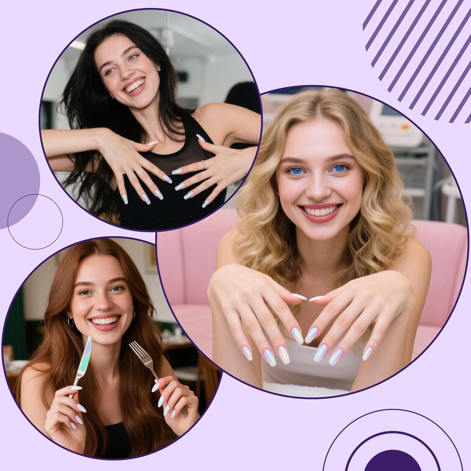 - WIDE APPLICATION:These powders need to be used with Gel nail polish(color gel,gel base coat and glossy gel top coat). Some regular Polish can also be used, but not all. These powders can be used on natural nails, UV gel nails, acrylic nails or false nail tips. You can use them very easily. It is a good solution with rhinestones ใnail art fimo or other accessories to build a nice nail art
