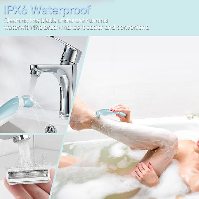 - 【Fully Waterproof for Convenience】 Our electric razor for women is designed with an IPX6 waterproof rating, making it safe for use in the shower. It can be easily cleaned under running water. The detachable razor head design allows for hassle-free cleaning, simply press the button and gently pull out the head. A brush is included for additional cleaning convenience.